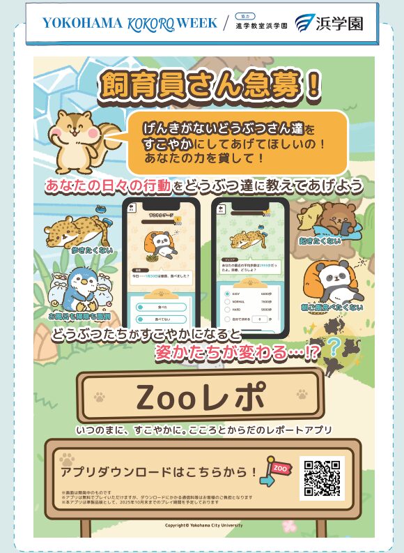 横浜市立大学と株式会社セガ エックスディーは、毎日の生活習慣改善をゲーム感覚で楽しめる、こころとからだのレポートアプリ「Zoo レポ」β版を、2025年8月19日の「YOKOHAMA KOKORO WEEK」に合わせてリリースいたしました。