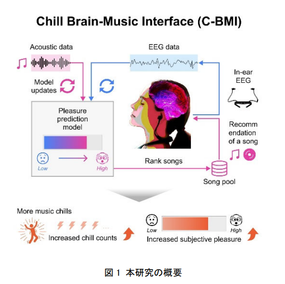 脳波をリアルタイムで解析し、個人ごとに最も快感を得やすい楽曲を自動で選ぶシステム「Chill Brain-Music Interface(C-BMI)」を開発。実験では、C-BMIが作成したプレイリストにより、実際に鳥肌の発生頻度や快感の自己評価が有意に高まることが明らかになりました。